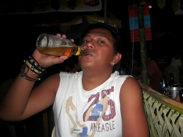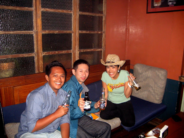 So we grabbed a few beers in a favorite bar of mine - where you don't have to get really dressed up to get in, where you don't have to pay P120 (almost $3) for a beer and where you can laugh as loud as you can. The name of the place is 77. I introduced Yoshi to my best friend for life (BFF) San Miguel!