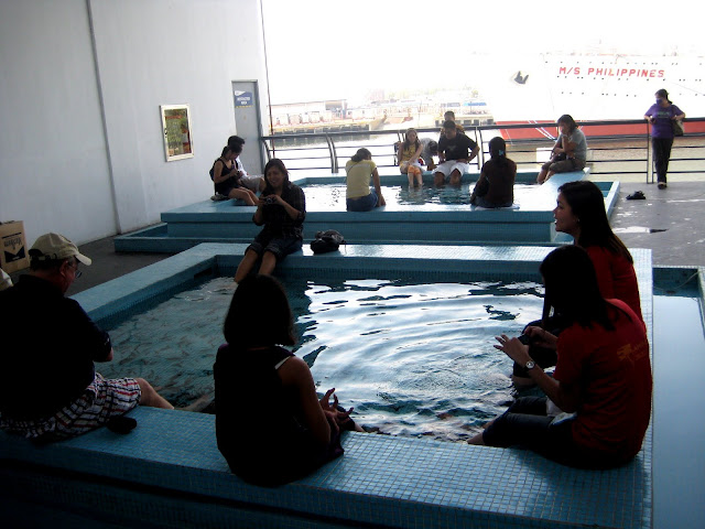 While walking around the Ocean Park, we noticed many people around one miniscule pool. Well, it is the Fish Spa. A growing trend around here in Manila. Where people can dump their feet on the pool and let the fish scrub out dead skin cells. WTF. Just went for a look, i don't really recommend it. Just not interesting to me. But it might be fun to some.